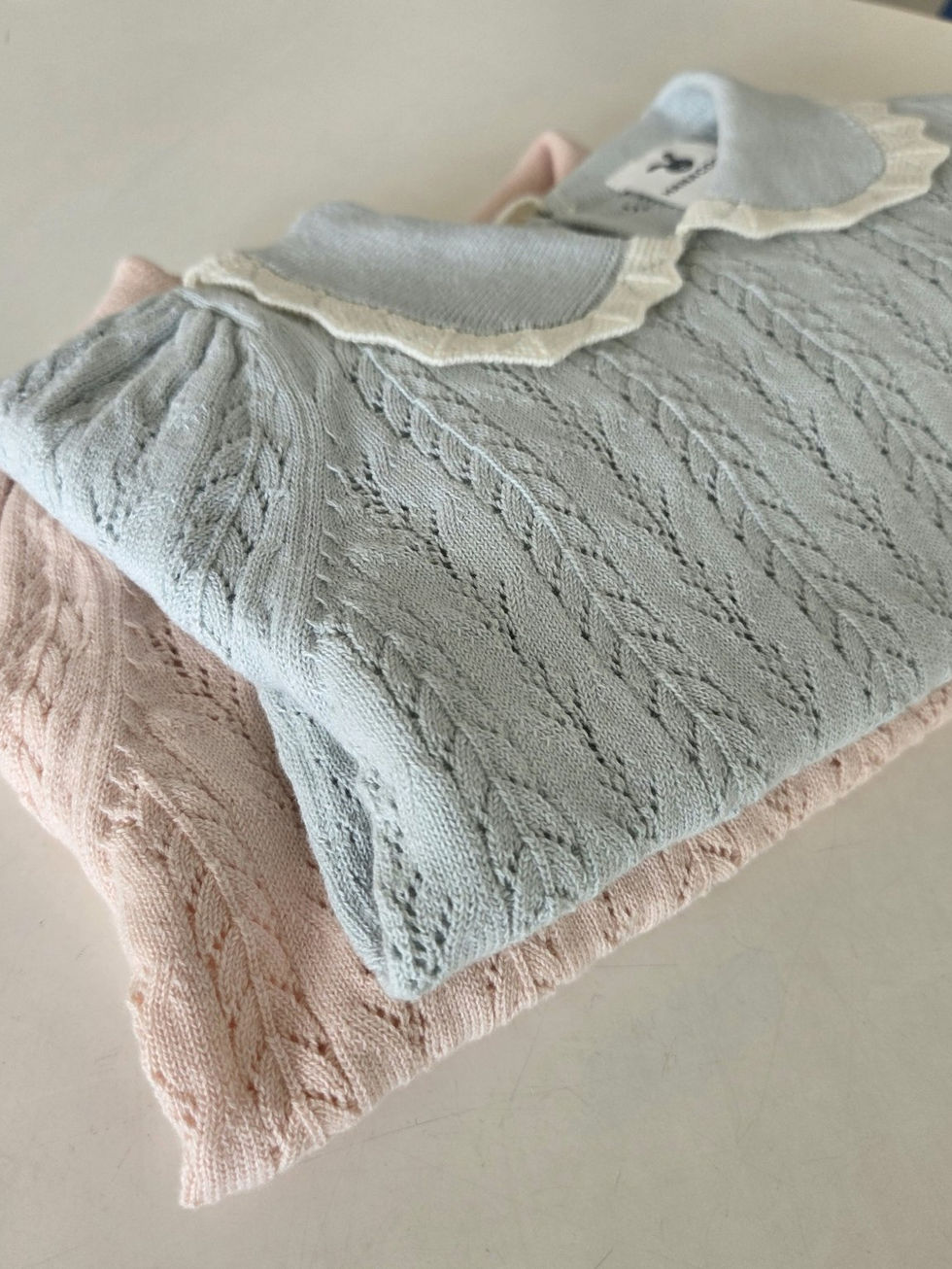 A sweet and elegant kids’ knit sweater featuring a delicate collar design. Made with soft knit fabric, this sweater provides both warmth and comfort for daily wear or special outings. The scalloped collar detail adds a charming, vintage-inspired touch that elevates the look. Perfect for layering with skirts, dresses, or pants, it’s versatile enough for both casual and dressy occasions. Available in pink and blue, this piece makes a timeless addition to your child’s wardrobe.